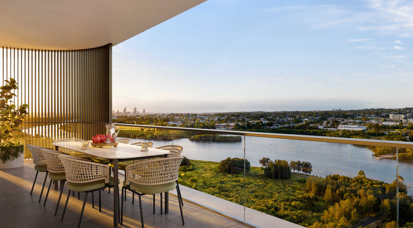 Its holistic design delivers a private lagoon pool, delightfully curated podium gardens and everyday access to natural landscapes through an exclusive outlook to the foreshore parklands and the river beyond.